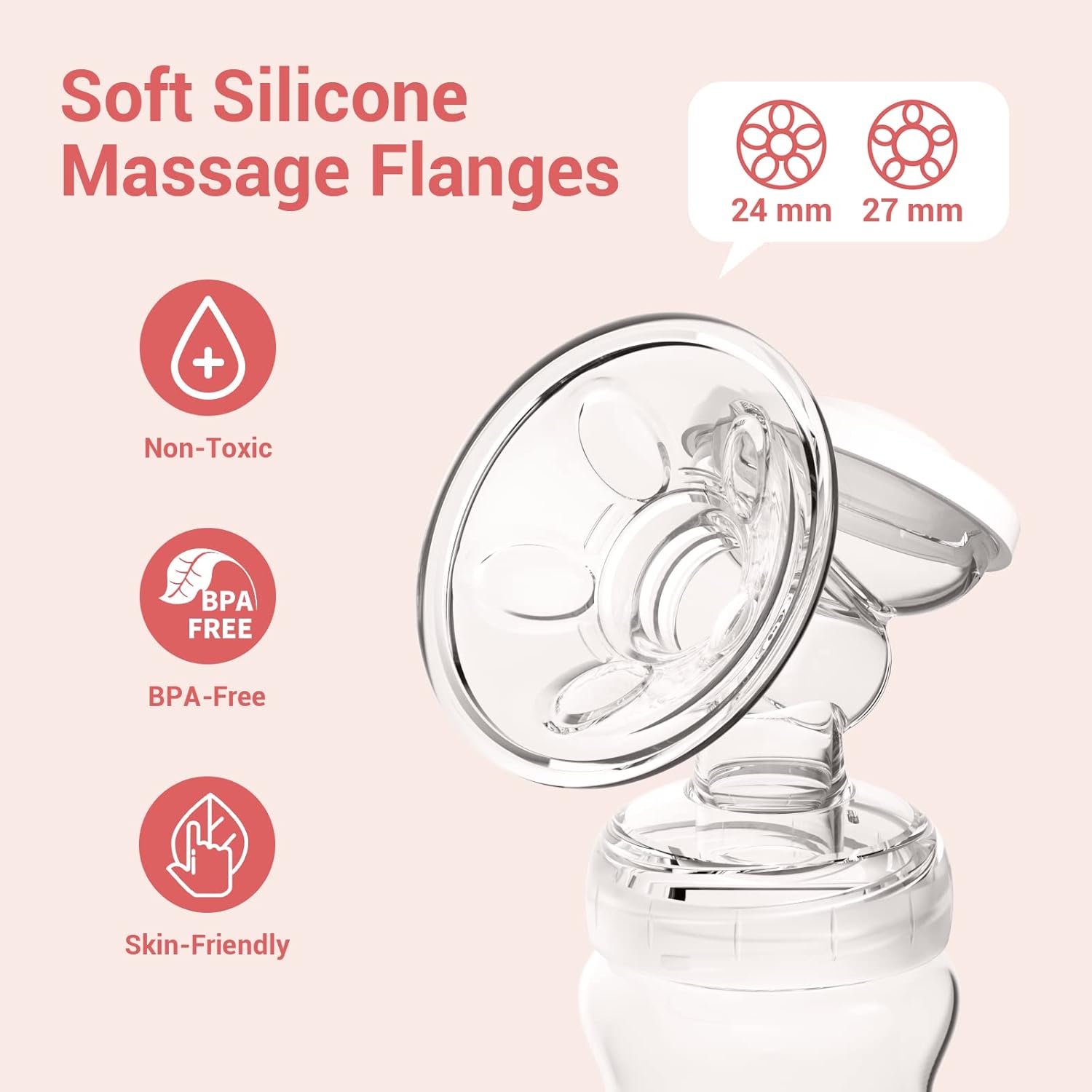 - SOFT SILICONE MASSAGE FLANGES: Chefhandy electric breast pump offers 24mm and 27mm 2 sizes flanges, satisfying different needs of mothers. Different from the common flange on the market, there are 5 finger-like convex points on our flange, press, and massage at the same time to stimulate lactation, helps mothers release more breast milk, and have a comfortable breastfeeding experience